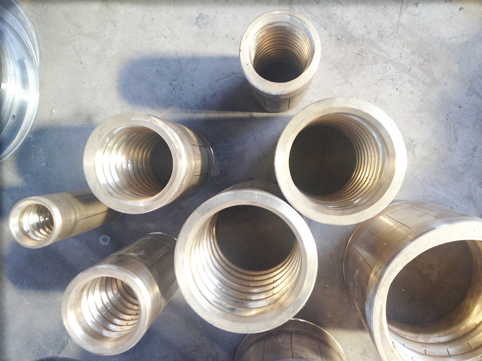 7.優化設計的銅質螺旋定徑套,入口端帶有可預冷卻裝置和強力吸真空裝置,適用於該管材的高速擠出。